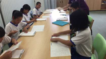 自分の名前を打った紙を支援学校の生徒に読んでもらい、ちゃんとできているか確認してもらいました。