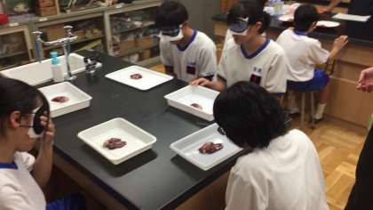 今日は鳥の内臓(心臓と肝臓)をアイマスクをして確認しました。