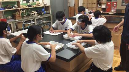 理科の授業では、支援学校の生徒たちは、写真や動画などでは確認できないので、実際に手に取って、重さや触感で確認する作業をしました。