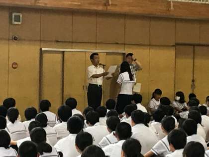 本日体育館において、1学期終業式を行いました。
