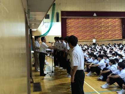まず最初にバドミントン部、伊藤園おーいお茶新俳句大賞、ソフトテニス部の表彰がありました。