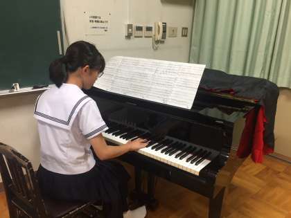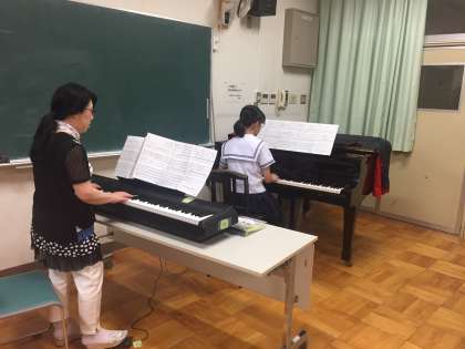 音楽コンクールの指揮者、伴奏者の練習の様子です。