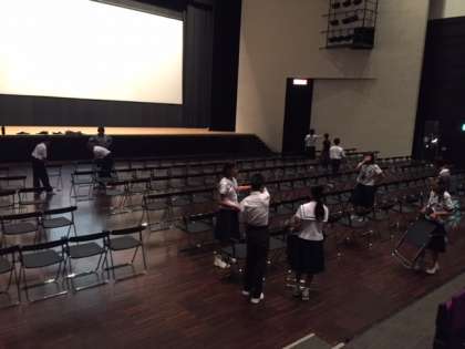 9時30分に住吉区民センター前に集合している間に、1年生の学級代表が1年生の座席を設置してくれました。