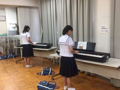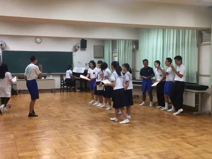 本日午前中、多目的室において、文化祭全体合唱(サクラ咲ケ)の指揮者・ピアニスト・コーラスなどの特別チームの練習を行いました。