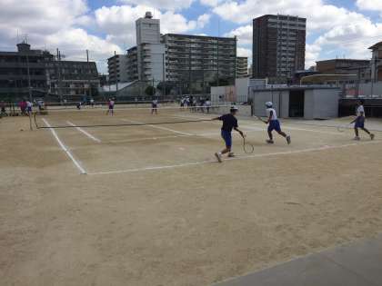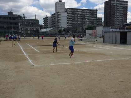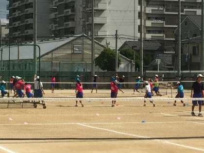 ストレッチ等準備運動をした後、コートを3カ所に分けて、ストレートとクロスうちの練習をしています。