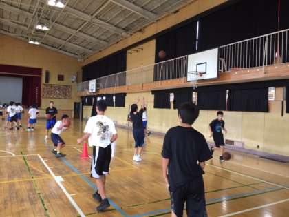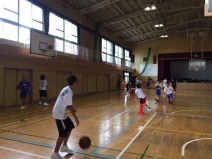 ボールミートからドライブ、ジャンプシュートなどの基本練習に取り組んでいます。