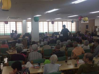 本日午後から吹奏楽部が、万代東にある介護施設「ツクイ大阪南万領」に訪問演奏させていただきました。