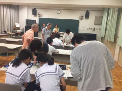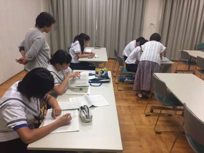 多くの生徒たちが参加し、夏休みの宿題などに取り組んでいます。学年の先生方も一緒に入って教えてくれました。