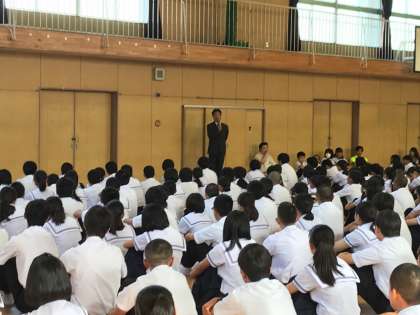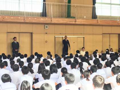 表彰に続いて校長先生から、その後生徒指導主事の上野先生からお話がありました。