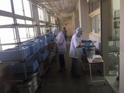 私たちが給食を食べた後も、配膳員さんは残食の計量をしたり、食器の返却状況を1つずつ確認してくれています。