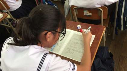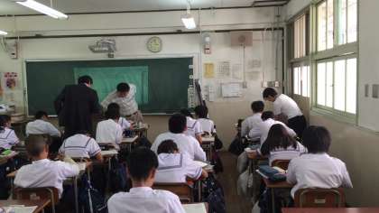 本日6限、1年生数学科の授業で「学力向上推進モデル授業指導実践チーム」を招き、研究授業を行いました。
