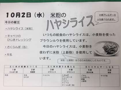 『10月2日 給食献立』