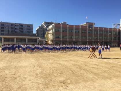 ひとりひとりが大きな声で歌い、運動会の最初にふさわしい、迫力のある校歌になりました。
