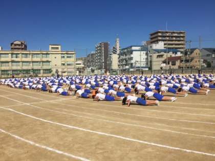 写真中段・下段は、三稜中体操・トレーニングの様子です。