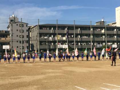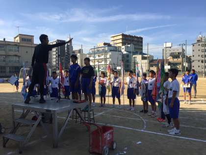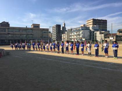 放課後、生徒会役員と体育委員で「運動会開閉会式」の練習を行いました。