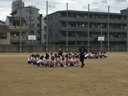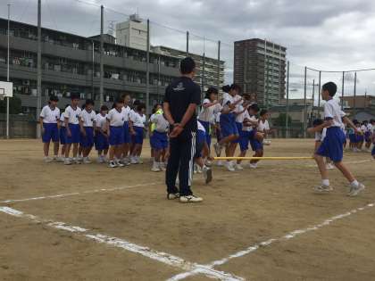 召集の練習が終了し、学年種目(台風の目)の練習をしています。