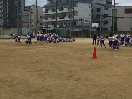 先生からの説明を受けて、いよいよクラス対抗で練習しました。