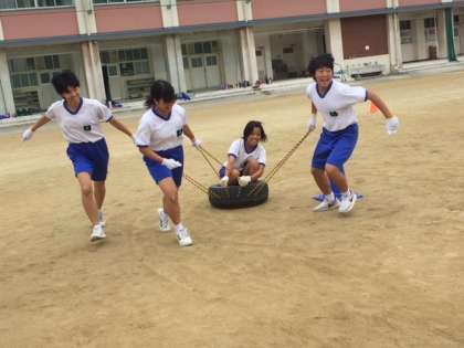 開会式の練習の後、学年種目(それひけ!タイヤマン!)の練習です。