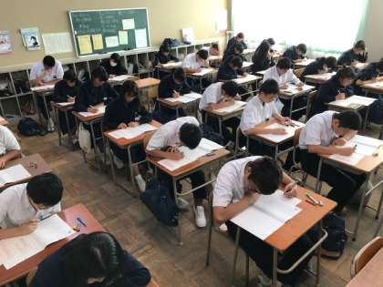本日5限、3年生は「大阪市英語能力調査」(英検IBA)を実施しています。