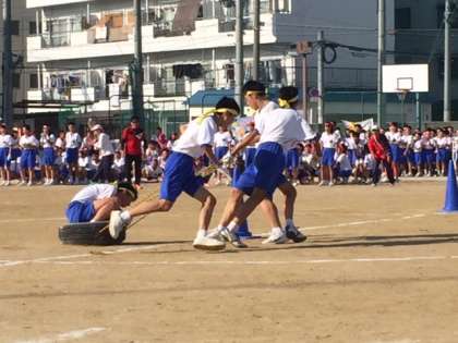 2年生の学年種目は「それいけ!タイヤマン!」です。