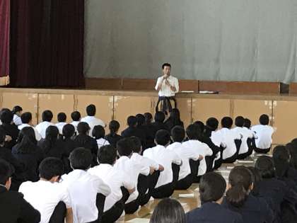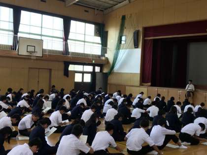 5限に進路学活を行い、今後の進路の流れについて、進路指導主事の渡辺先生から説明を受け、確認をしました。