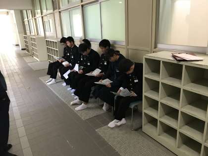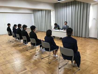 進路学習の一環でもあり、待機している生徒たちも緊張していました。
