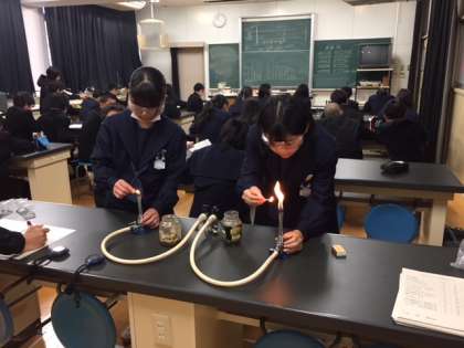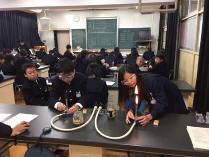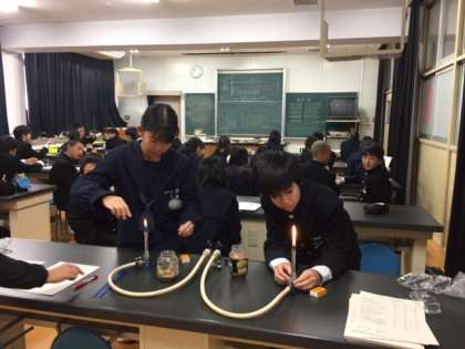 次に炎の大きさを10cmにして、空気調節ねじを開けて青い炎にします。