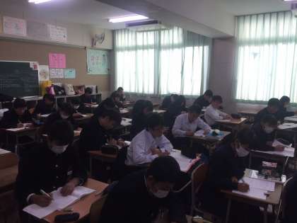 3年生は午後から、卒業文集と自己申告書の下書きをしています。