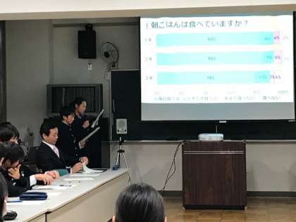 今回は、生徒保健委員が定期健康診断と生活アンケートの結果について報告しました。
