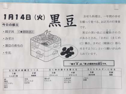 黒豆の黒い色には魔除けの力があるとされ、「まめに(まじめに)働き、まめに(健康に)暮らせますように」という願いが込(こ)められています。おせち料理は、一年間の幸せを願って食べる、お正月の行事食です。