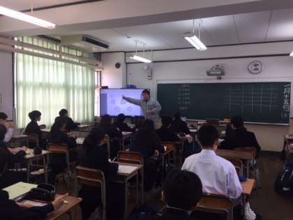 本日3限 学力推進モデル事業指導実践チームに来校していただき、1年生の数学の授業を参観していただきました。