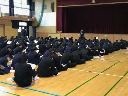 3年生はテスト終了後の4限に、明日の出願に向けての事前指導を行いました。