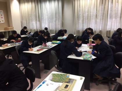 今日の授業は、私立の入試に向けて教え合いながらテスト対策をしています。