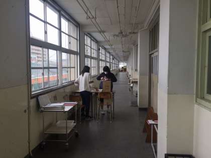 朝から各学年クラスごとに、提出物を持ってきて課題を受け取って帰ります。