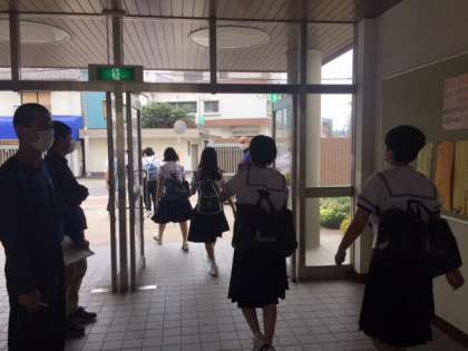 学校で検温する生徒が多くなると待ち時間が長くなるので、必ず家庭で検温してから登校してください。