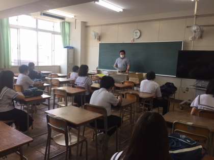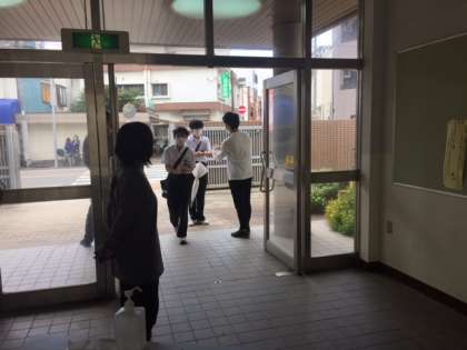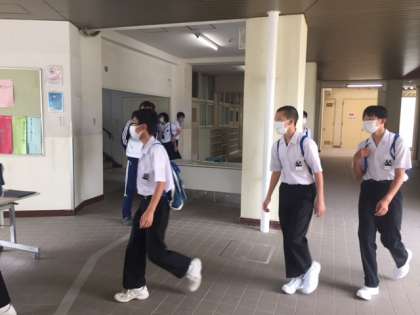 写真上段はAグループの生徒が下校し、中段はBグループの生徒が登校してきます。