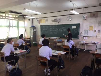 写真は上から、理科、英語、理科の学習活動の様子です。