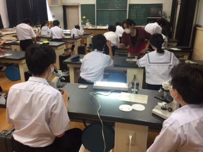 理科の授業では、顕微鏡を使っていろいろな花の「花粉」を調べています。