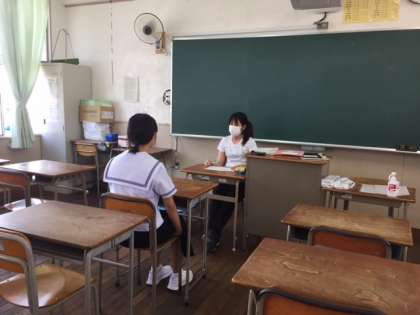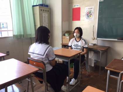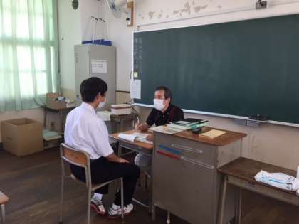 放課後に担任の先生が、学習や休校中の家庭生活などの心配事や悩み事を聞きながら、アドバイスをしています。
