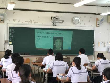 本日、放送による着任式・始業式・生徒会四役認証式・対面式を行いました。