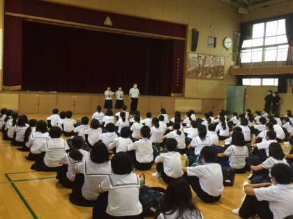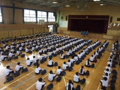 本日6限、1年生は体育館で部活動紹介を実施しました。