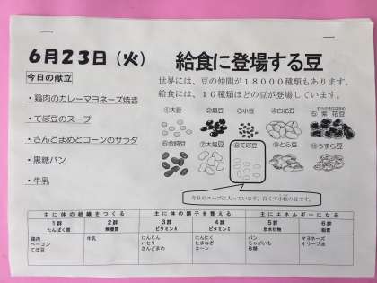 本日のスープには「てぼ豆」が入っています。(白くて小粒の豆です)