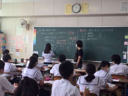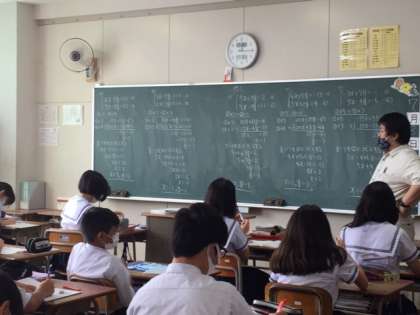 国語は短歌、数学は連立方程式、理科は鉄と硫黄の化合について学習しています。