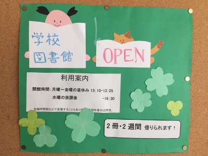 図書館支援員や学校元気アップの方々、文化委員の人たちが趣向をこらし、来館しやすい雰囲気にしてくれています。