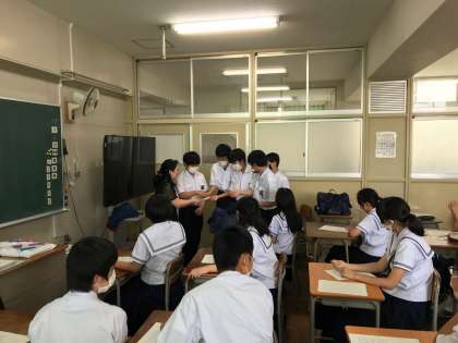 音楽コンクール当日の舞台出演順の抽選と、楽譜の表紙づくりなどが行われました。