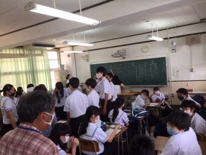 各学年のシャボネットを補充した後、6月の反省と7月の目標について話しあっています。