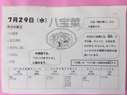 「八宝菜」は、「うずら卵」の個別対応献立です。
