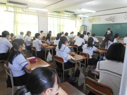 新型コロナウイルス感染防止のためホール内の人数制限があり、3年生は学校で授業を行いました。