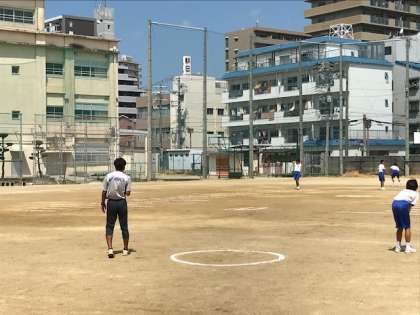 暑さの中ですが、「ハンドボール投げ」をみんな頑張っています。