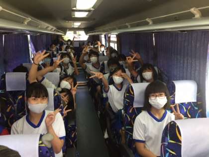 バスに乗り込みラフティングの黒部川に向かいます。